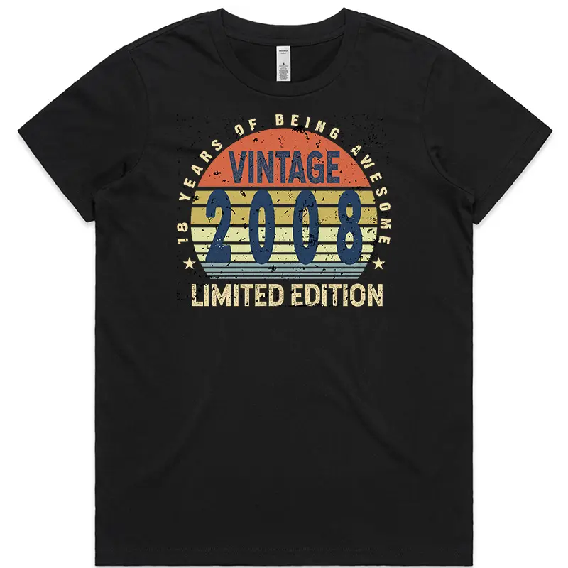 This design is available in ladies’ sizes XS to 3XL and is offered in Black only, making it a straightforward and versatile option for celebrating an 18th birthday.