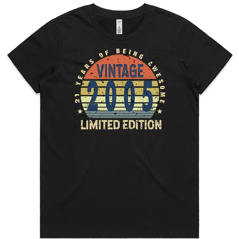 This design is available in ladies’ sizes XS to 3XL and is offered in Black only, making it a simple and versatile option for celebrating a 21st birthday. Designed and branded for Australian customers, this birthday-themed T-shirt delivers a neat finish, professional print quality, and consistent construction without unnecessary embellishment.