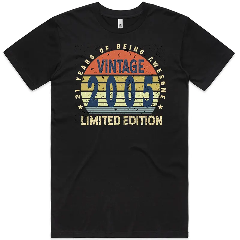 The 21 Years of Being Awesome Birthday T Shirt is a men’s pre-designed graphic tee created to celebrate a milestone birthday with simple humour and everyday comfort. The design features a full-colour front print, applied using DTG or DTF printing depending on the artwork to ensure clean detail and consistent colour reproduction.