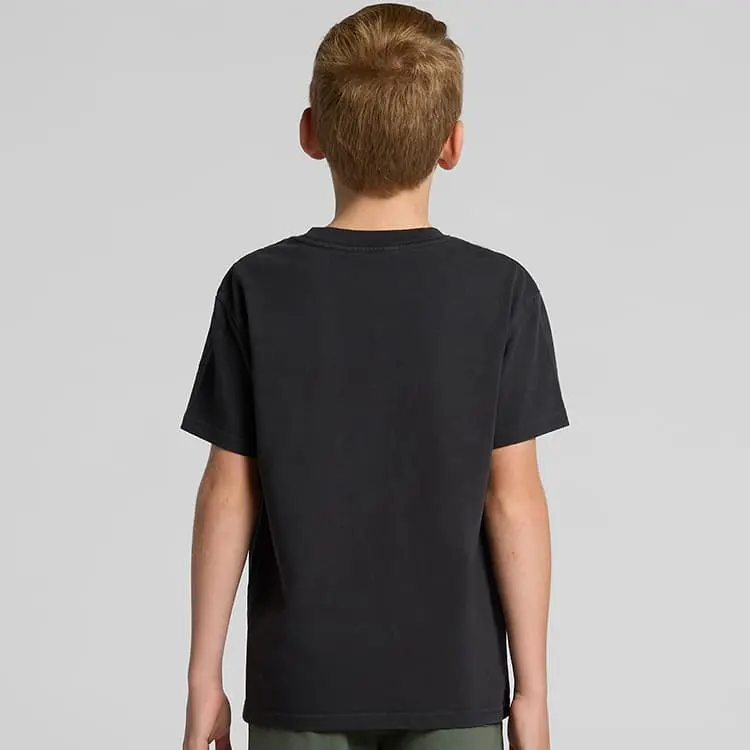 All standard orders include the AS Colour Kids Heavy Faded T-Shirt, selected for a relaxed drape, garment-dyed character, and dependable print performance:
