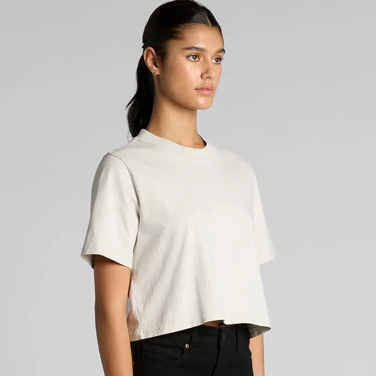 All standard orders include an AS Colour Ladies Heavy Faded Crop T Shirt, chosen for heavy weight fabric, garment dyed colour, and reliable custom printing:
