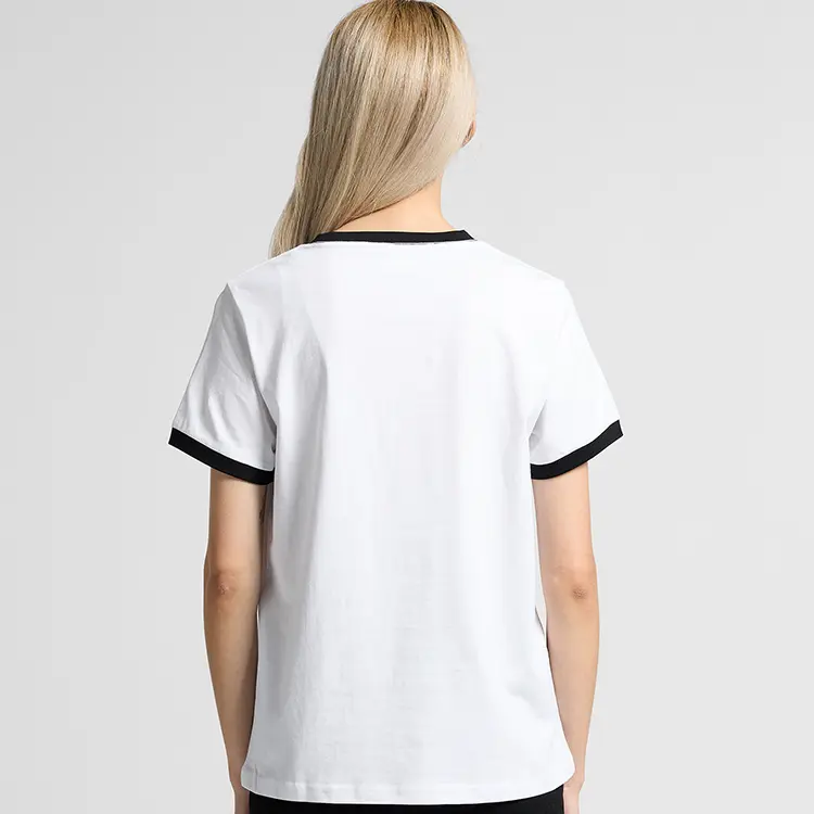 Our custom printed AS Colour Ladies Maple Ringer T Shirt combines mid weight 180 GSM combed cotton, contrasting ribbing at the neck and sleeve hems, and professional digital printing with standard 6–10 business day handling. Available in White/Black, White/Navy, and White/Red, XS–XL. Order from T Shirts Australia for Australian production and a dependable ladies Maple Ringer tee.