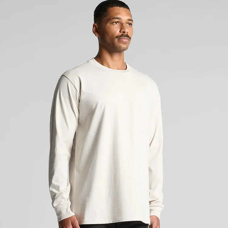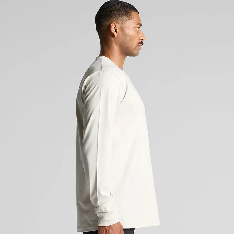 If you are comparing long sleeve blanks on T Shirts Australia, this Classic sits in a practical middle weight: the same 220 GSM 22-singles combed cotton story as the short sleeve Classic Tee, but in a long sleeve cut with cuffed sleeves for a tidy finish at the wrist. Against a lighter long sleeve option such as the AS Colour Men’s Staple Long Sleeve T Shirt at 180 GSM, this style feels more substantial in the hand and holds a slightly more structured drape—useful when you want a bolder base for large prints or a more “winter-weight” tee layer.