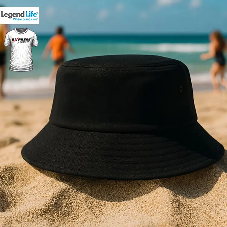 Our Express custom printed Bells Bucket Hat offers prioritised 3 to 4 business day handling, ideal for businesses, teams, events, and promotions needing fast turnaround. Made from cotton twill with embroidered eyelets, a 5cm wide brim, and padded sweatband, available in 15 colours and sizes XS (54cm), S/M (57cm), and L/XL (60cm). Printed in Australia using DTF or DTG methods — upload your artwork or create it using our online design tool. Please ensure your design is print-ready before submitting.